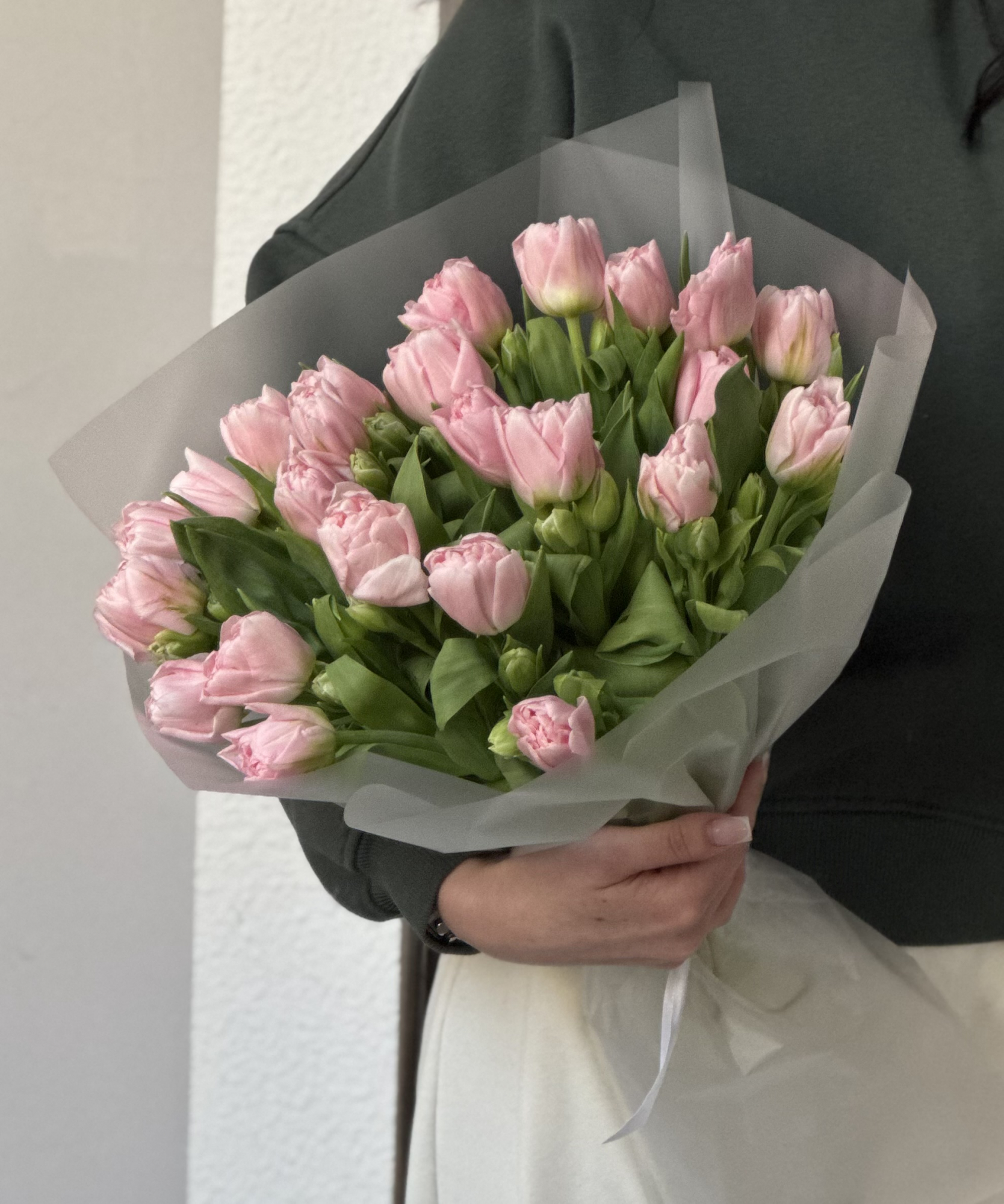 25 нежно розовых тюльпанов